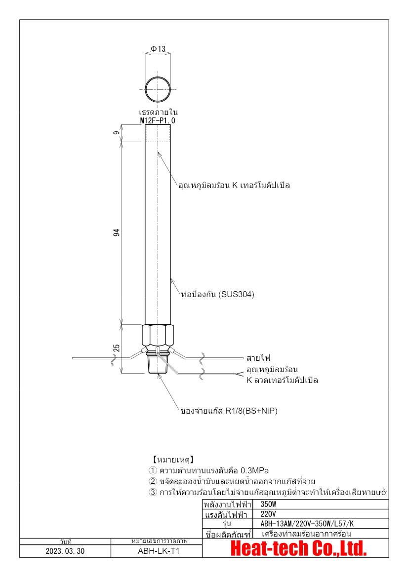 - Pemanas udara panas ABH-34NM/220V-3kW/L290/K (dengan termokopel internal, kabel 1m)