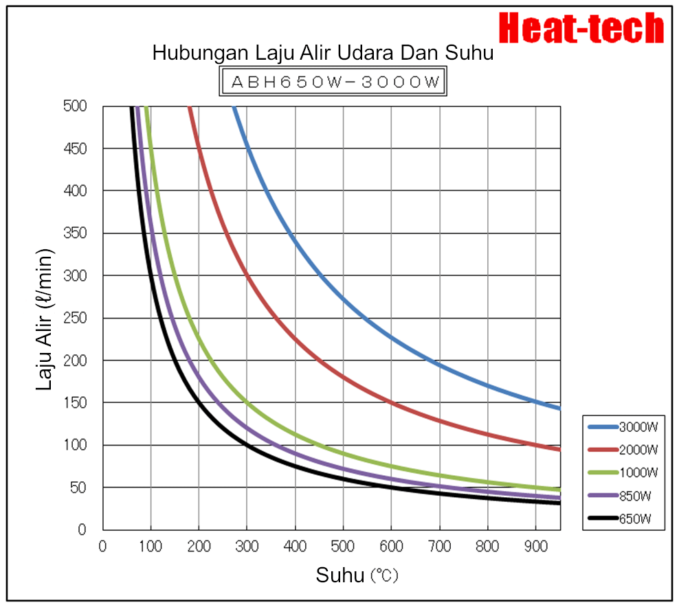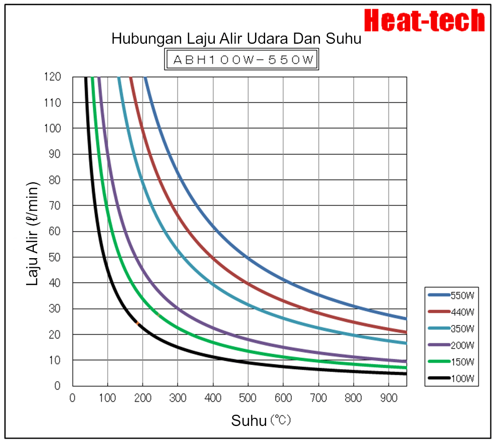 5-2 Periksa grafik “Hubungan antara volume udara dan suhu 100W-550W".