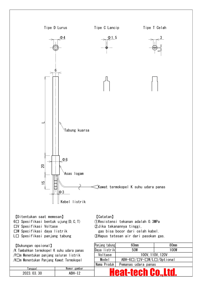 • Tabung pemanas adalah ukuran pensil φ6.