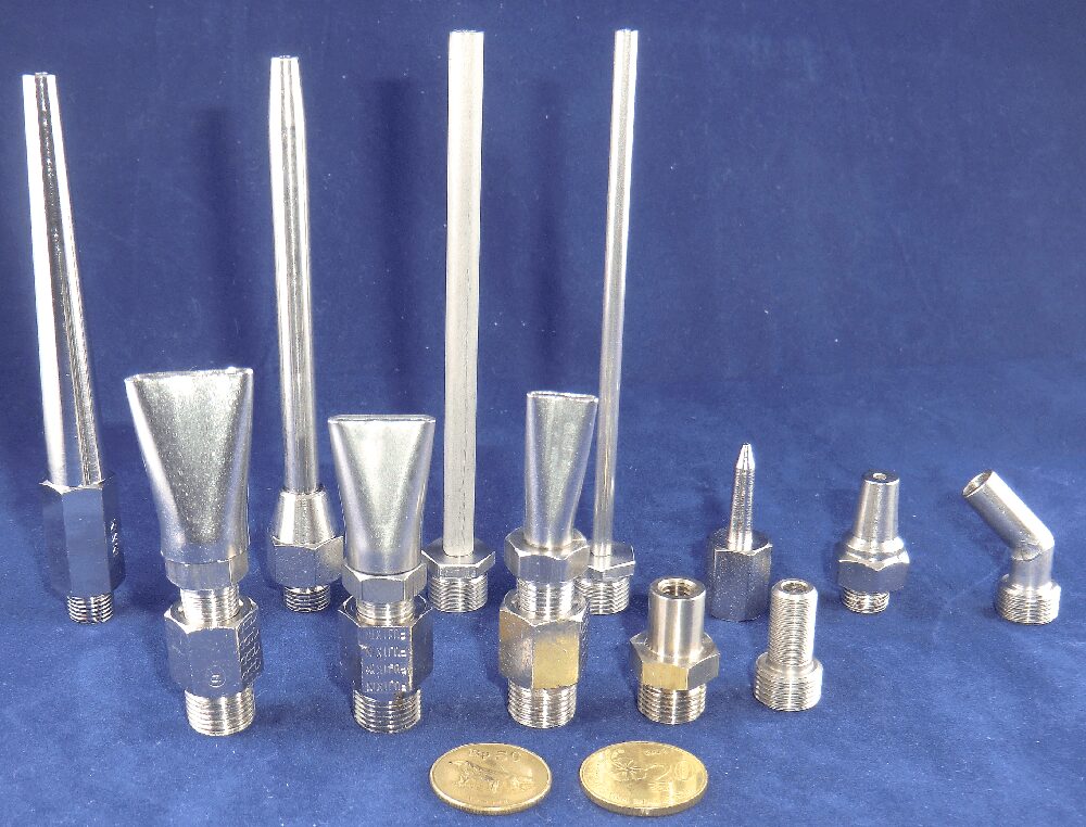 Karena ujungnya memiliki ulir internal, berbagai perlengkapan logam dapat dipasang.