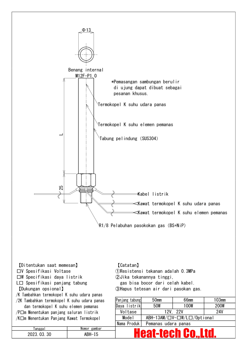 • ABH-13A dapat memanaskan gas yang lewat hingga 900°C secara umum dan hingga 1000°C.