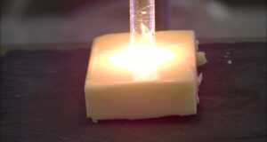 Ini adalah demonstrasi pemanasan presisi pada Keju keras m ...