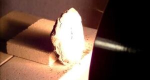 Ini adalah demonstrasi pemanasan batu rijang dengan pemanas ...
