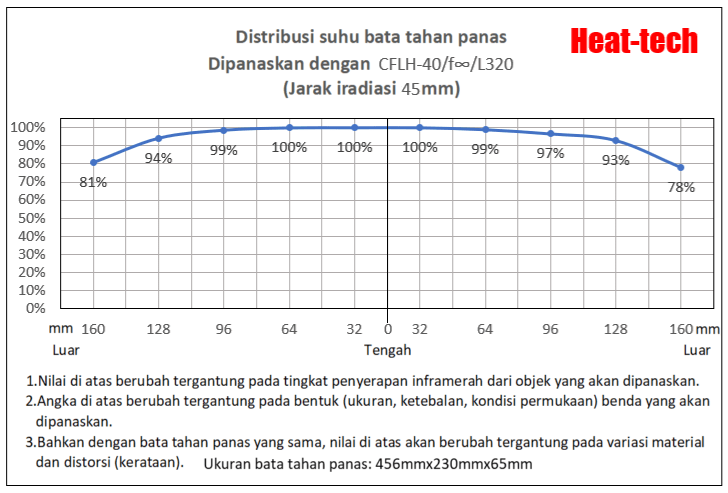Ketika suhu elemen pemanas diatur ke 700℃, panjang gelombang puncak energi radiasi kira-kira 3μm, sehingga ideal untuk memanaskan tetesan air, larutan berair, dan senyawa terhidrasi lainnya.