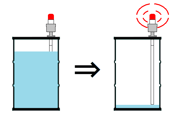 ④ DLC-800 akan mengeluarkan alarm ketika ketinggian air turun dan sensor mendeteksinya.