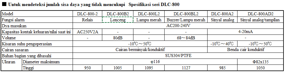 3.Untuk mendeteksi jumlah sisa daya yang tidak mencukupi Spesifikasi seri DLC-800