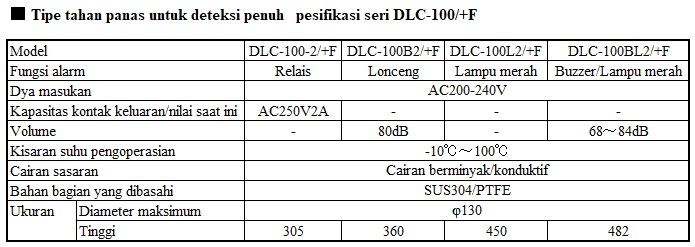 - 4.Tipe tahan panas untuk deteksi penuh pesifikasi seri DLC-100/+F