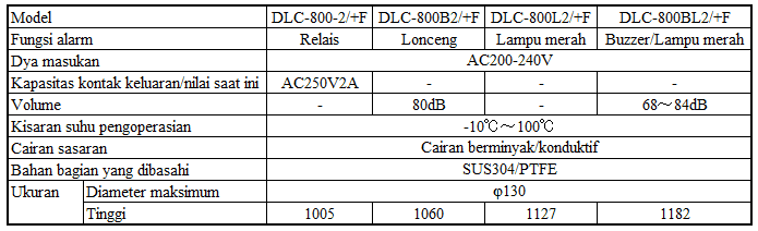 - 5.Tipe tahan panas untuk mendeteksi jumlah sisa yang tidak mencukupi Spesifikasi seri DLC-800/+F