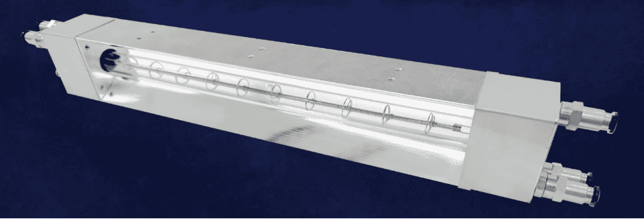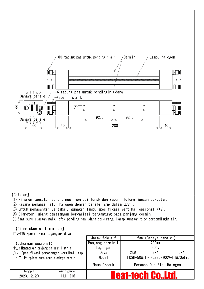 Lampu halogen dimasukkan di tengah pemanas, sehingga kedua sisi dapat dipanaskan.