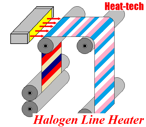 Pemanas garis halogen digunakan untuk memanaskan melalui kaca.