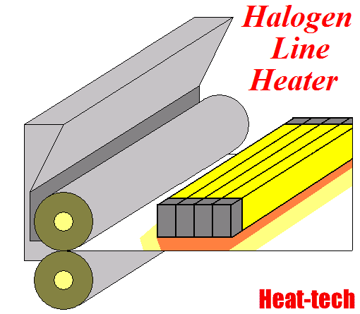 Kain pra-dicelup setelah penyabunan dikeringkan dengan pemanas garis halogen.