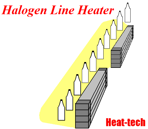 Pemanas garis halogen digunakan untuk memanaskan melalui kaca.