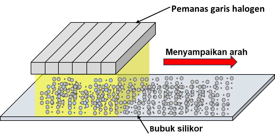 Pemanasan dilakukan dengan memasang pemanas garis halogen yang saling berhadapan. Karena mudah dipasang pada pipa, investasi modal berkurang.