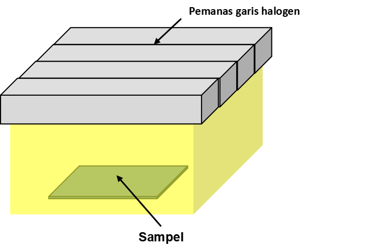 Dengan pemanasan dengan pemanas garis halogen yang saling berhadapan, waktu pemanasan dihemat dan pemanasan suhu tinggi tercapai.