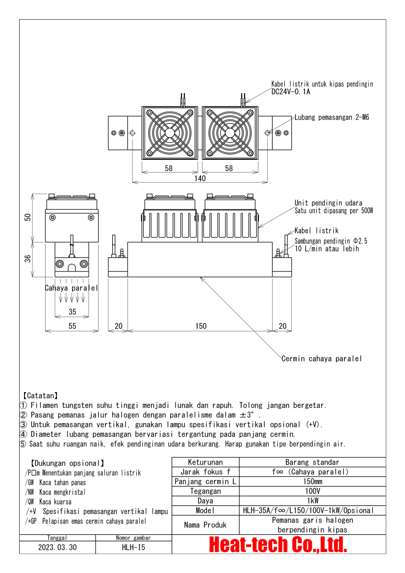 Pemanas garis halogen super kecil HLH-35W/f∞ adalah unit pemanasan garis menggunakan lampu halogen batang.