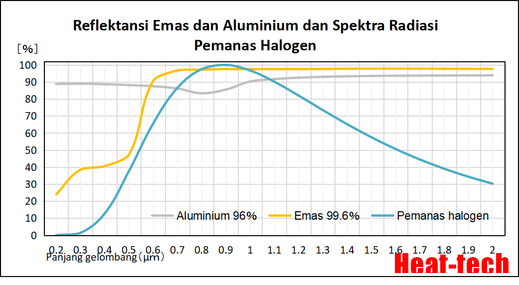Cermin kolektor berlapis emas paling efektif memantulkan energi radiasi lampu halogen.