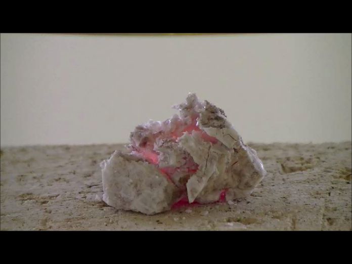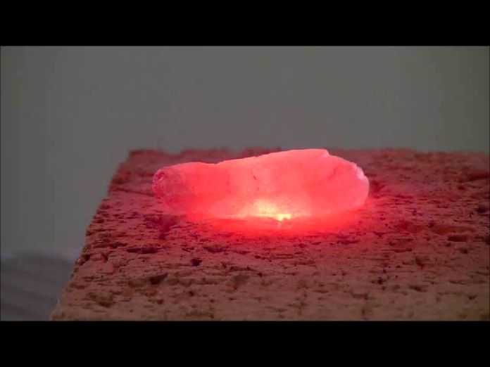 Ini adalah demonstrasi pemanasan, peleburan, dan vitrifikasi Chrysocolla menggunakan pemanas titik halogen.