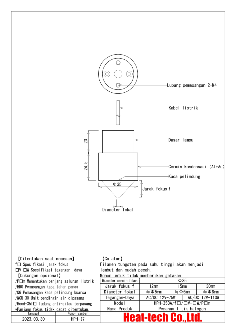 HPH-35 adalah pemanas titik halogen yang dapat menghasilkan pemanasan tinggi dengan mengumpulkan cahaya dari lampu halogen.