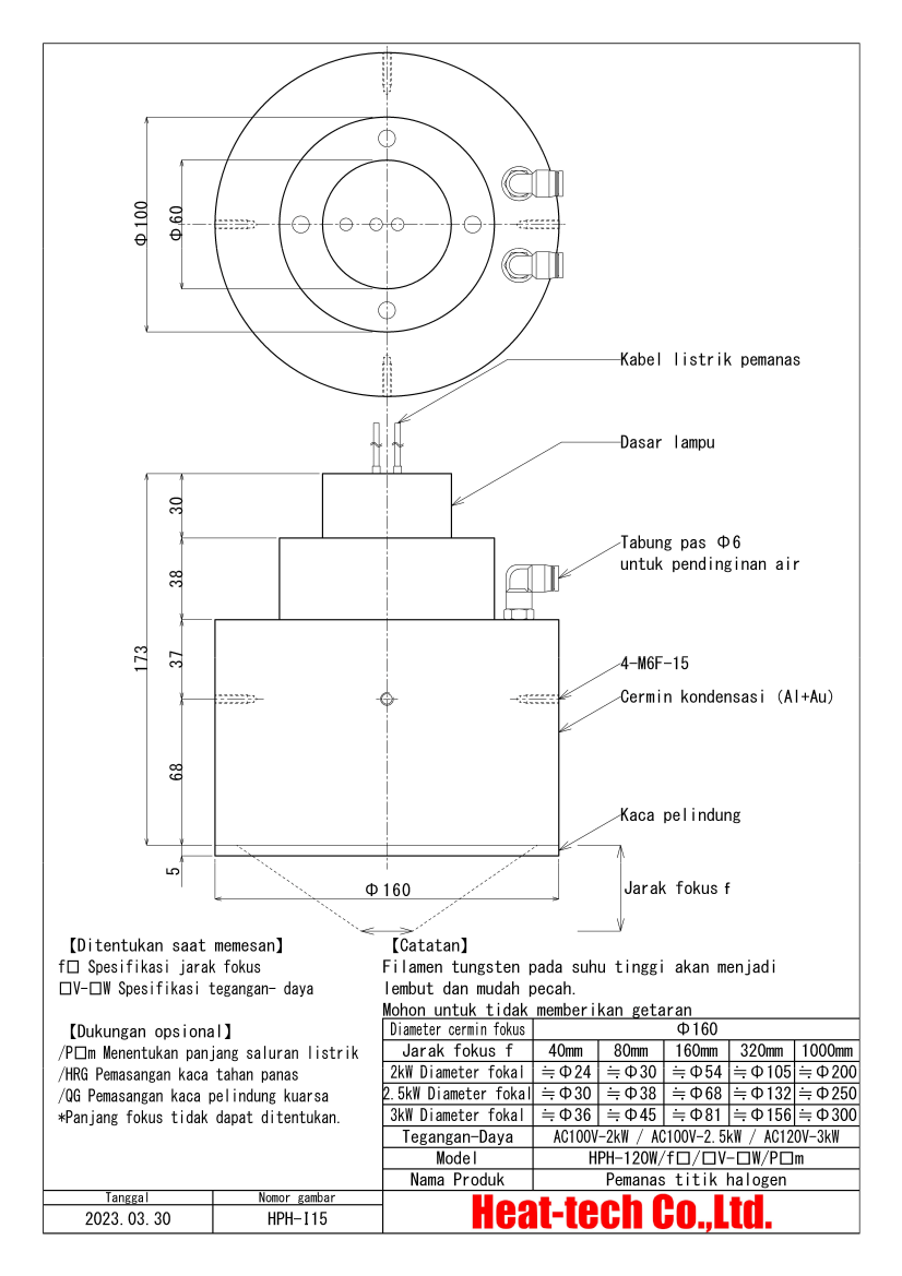 3.Fokus Jarak dan Diameter Fokus HPH-160