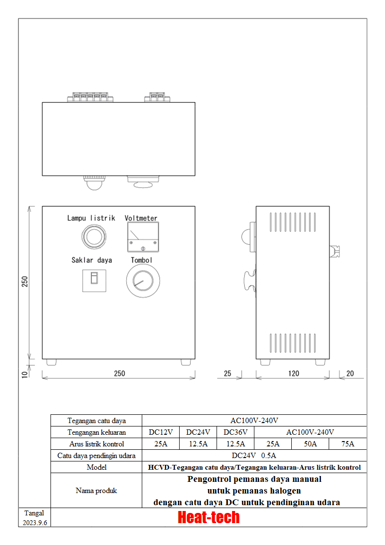 Dilengkapi dengan dial dan catu daya untuk kipas pendingin udara, kontrol voltase manual dari pemanas halogen tipe pendingin udara dimungkinkan.