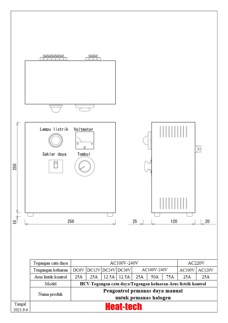 Pengontrol pemanas daya manual untuk pemanas halogen seri HCV