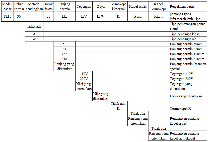 3.Daftar model pemanas garis inframerah jauh