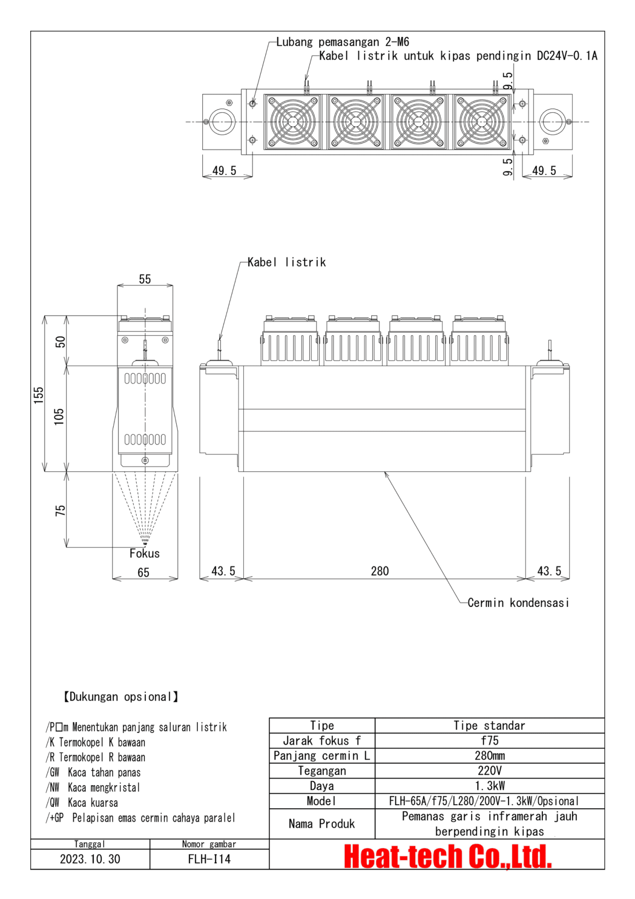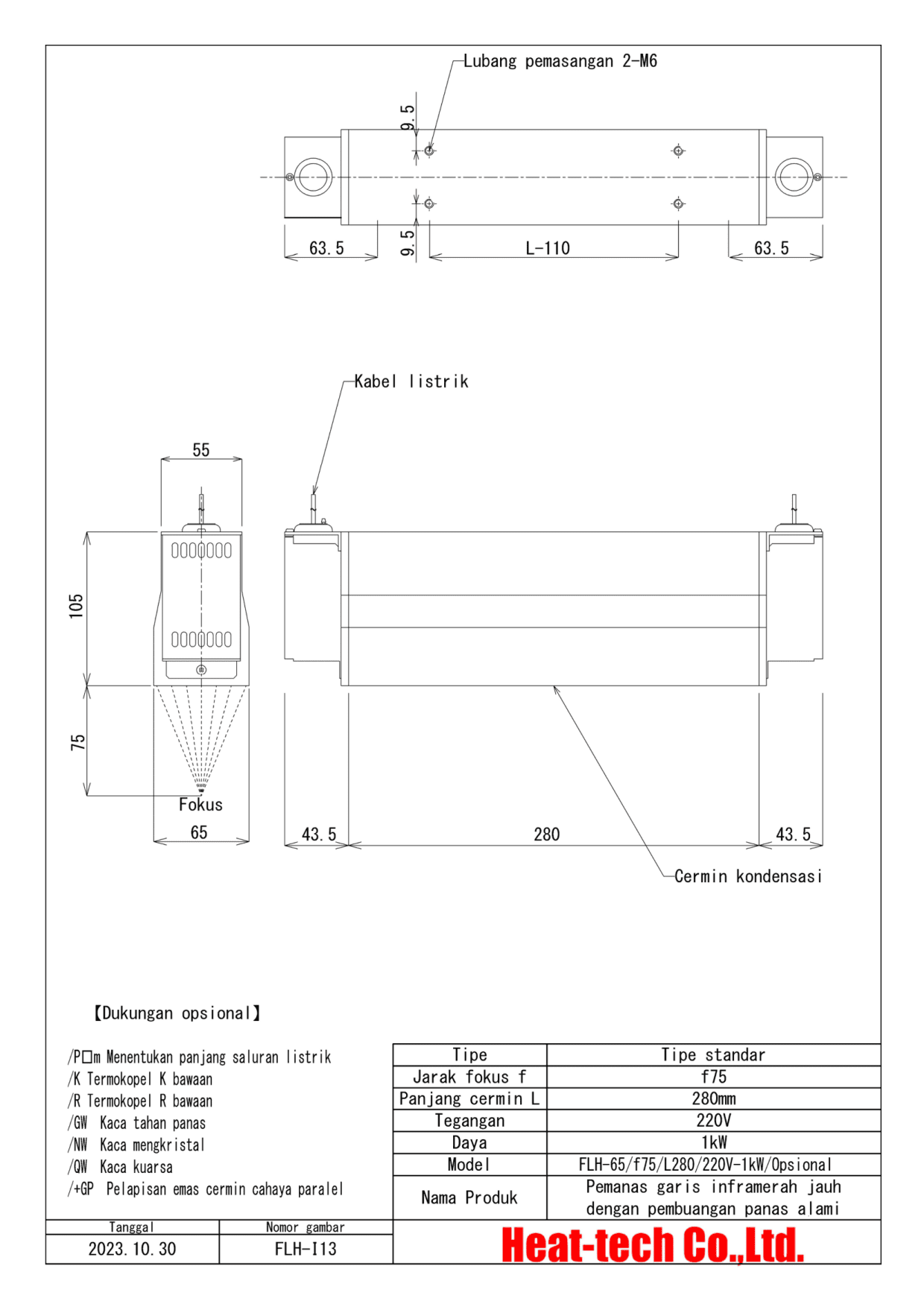(Contoh) FLH-65W/f75/L280/220V-1.3kW/K/P3m・K3m