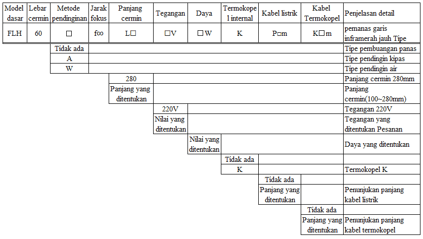 3.Daftar model pemanas garis inframerah jauh