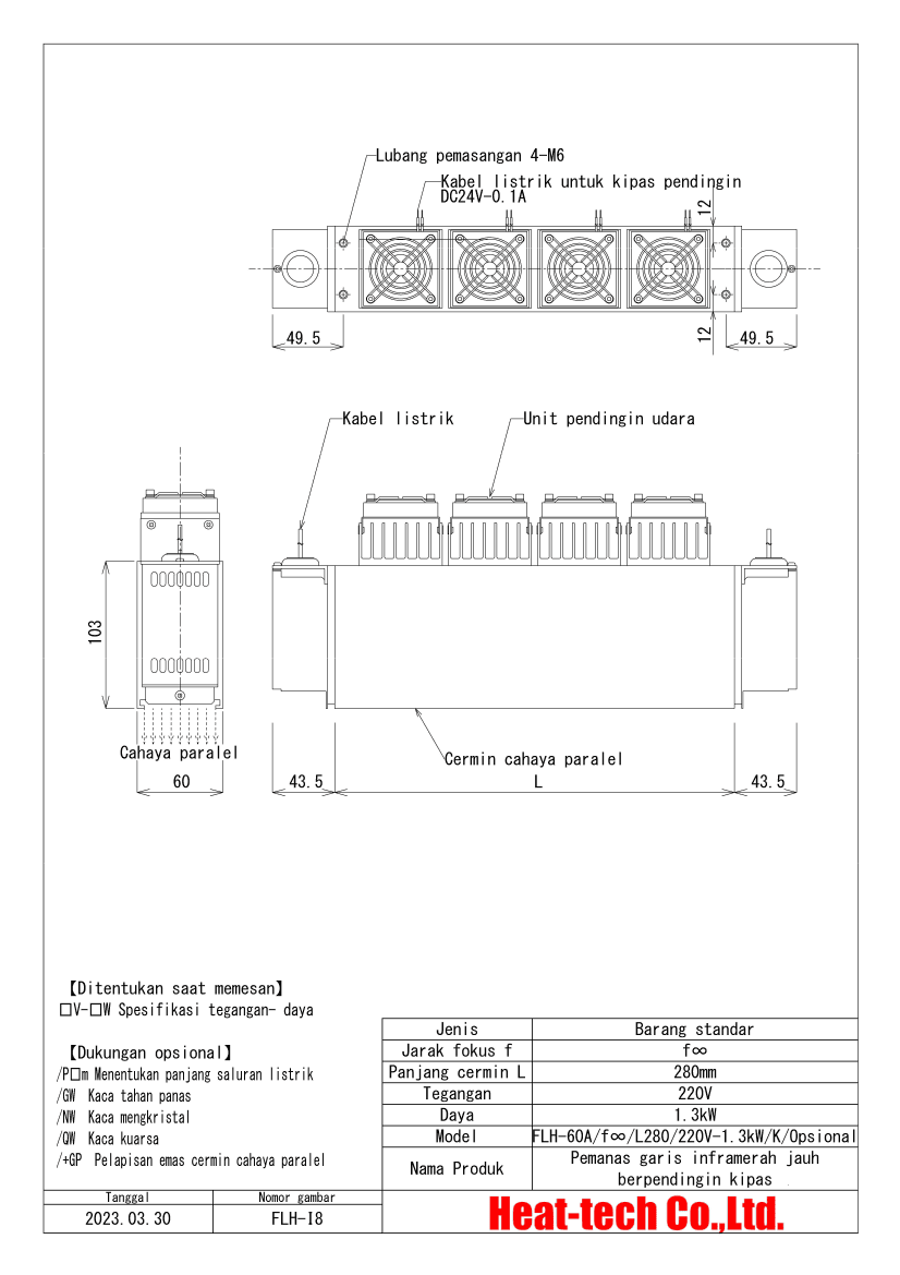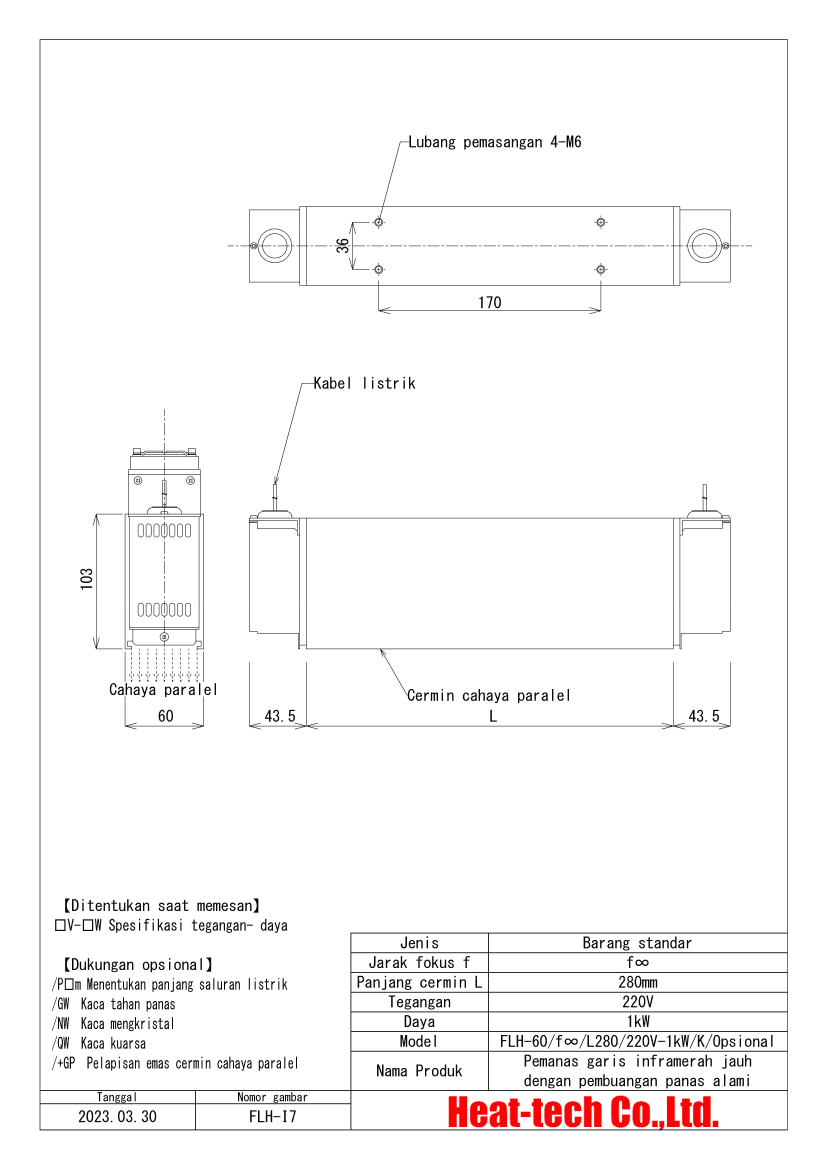 (Contoh) FLH-60A/f∞/L280/220V-1.3kW/+K/P3m・K3m