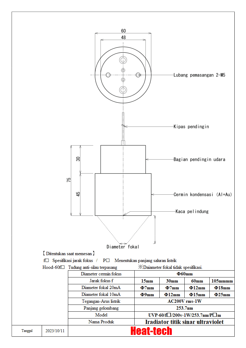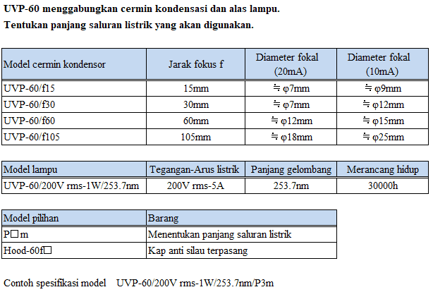 3.UVP-60 panjang fokus dan diameter fokus